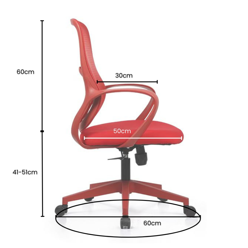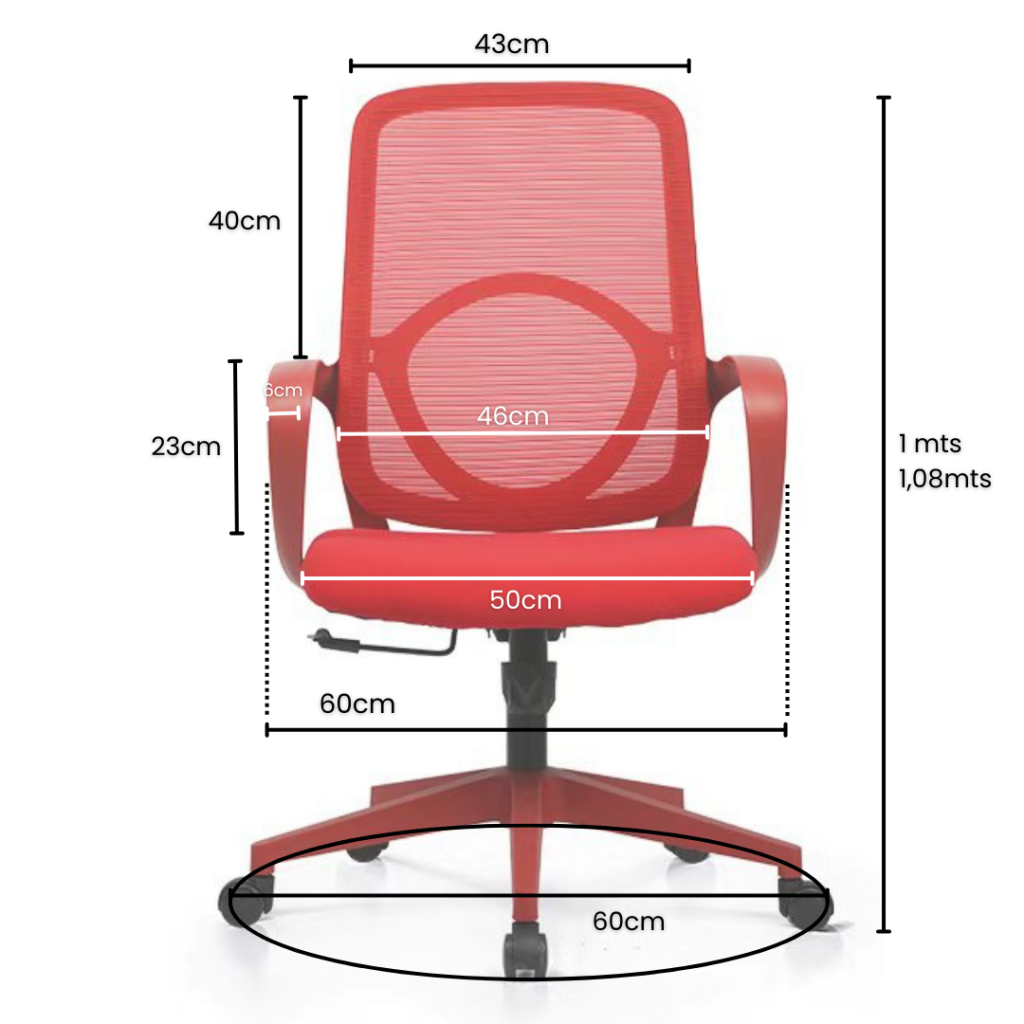 Con un asiento amplio de 50 × 50 cm, brazos fijos y capacidad para 150 kg, el Magna es ideal para quienes buscan comodidad y resistencia. Su altura regulable entre 41 y 51 cm y la inclinación hacia atrás permiten una postura más relajada cuando lo necesitás.